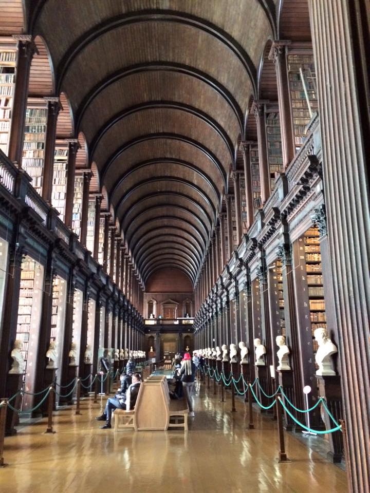 After that, we walked another 15 minutes to Trinity College (when it comes to transportation in Dublin, they have trams and buses and taxis, but we preferred walking because it’s an easy city to maneuver and most attractions are consolidated). Trinity College was founded in the late 16th century and modeled after England’s most prestigious universities, Cambridge and Oxford. It houses the Book of Kells, an ancient Latin manuscript from the 9th century that details the 4 Gospels of the New Testament with lavish illustrations. It only costs 9 euros to see it and our tickets granted us access to the famed Long Room of the Old Library as well. This library houses over 7 million texts and it was straight out of my imagination. You stroll peacefully along the polished hardwood floors, the wood-beamed ceiling arches high above you, and to your left and right are pillars of ancient texts, the browns and golds and mahoganies of their spines creating monochromatic mosaics of literature and history. It is the kind of beauty that a bookworm craves. I’m also told that it looks like the Jedi Library from Star Wars. Go figure.