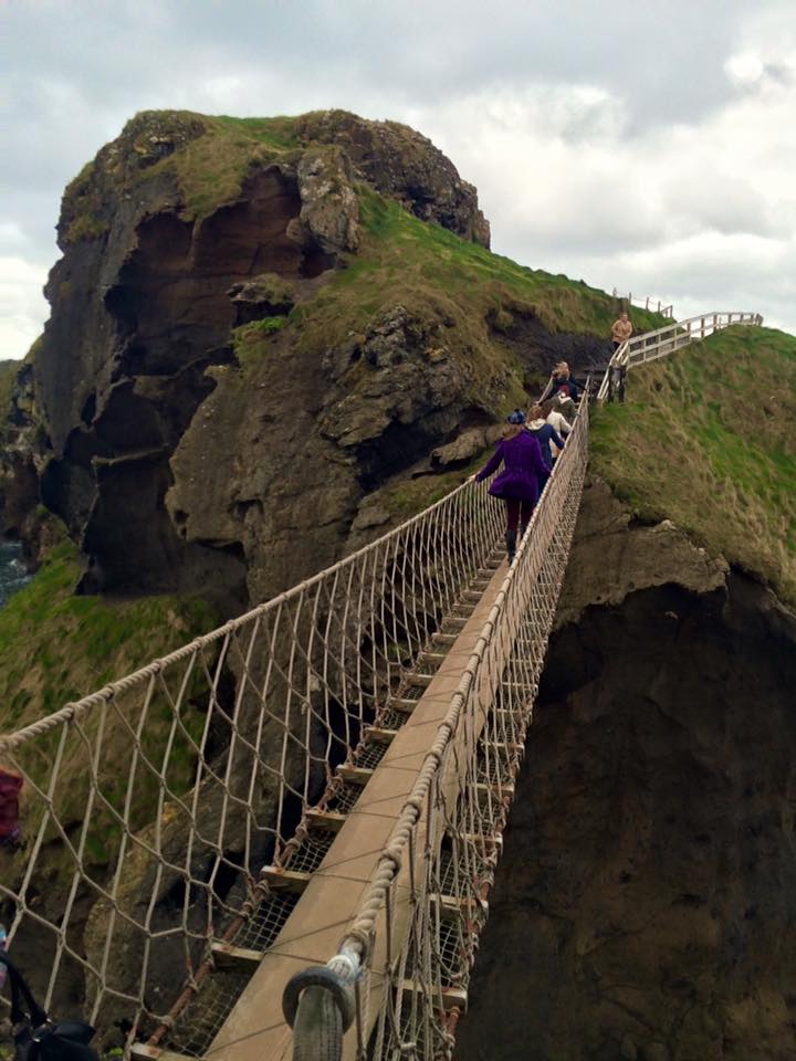 Val first took us to the famous Carrick-a-rede Rope Bridge which is nestled along the coast of Northern Ireland. I’ve never seen a land so striking. Rippling teal waves lined with silvery sea foam crashed against the mossy cliffs, and the wind danced in my hair while my boots squished over the rich, black earth. And of course, everything really is emerald. We marched along a winding path high along the coast until we reached our destination: a dauntingly skinny bridge of rope and wood that connects the coast to a small island. I crossed that swaying bridge, gazing down at the foamy green sea below. It was utterly amazing. Once everyone was safely back on the Paddy Wagon, we rattled down to the nearby village of Ballintoy and ate lunch at their Rope Bridge Bar and Restaurant.